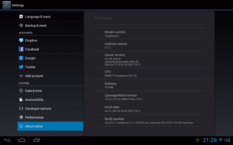 During the Christmas holidays I found a bit of time to upgrade my old (but still nicely working) Nexus One to CyanogenMod 7 and I’m really happy about that. Today I decided to give my Asus Transformer TF101 a go as well.