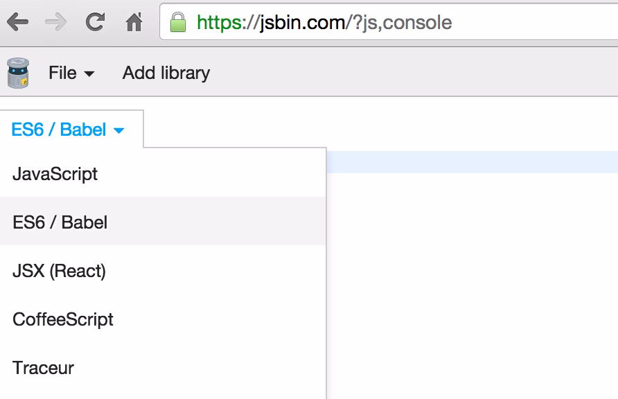 Simply create a new “bin”, and choose “ES6/Babel” as your language.