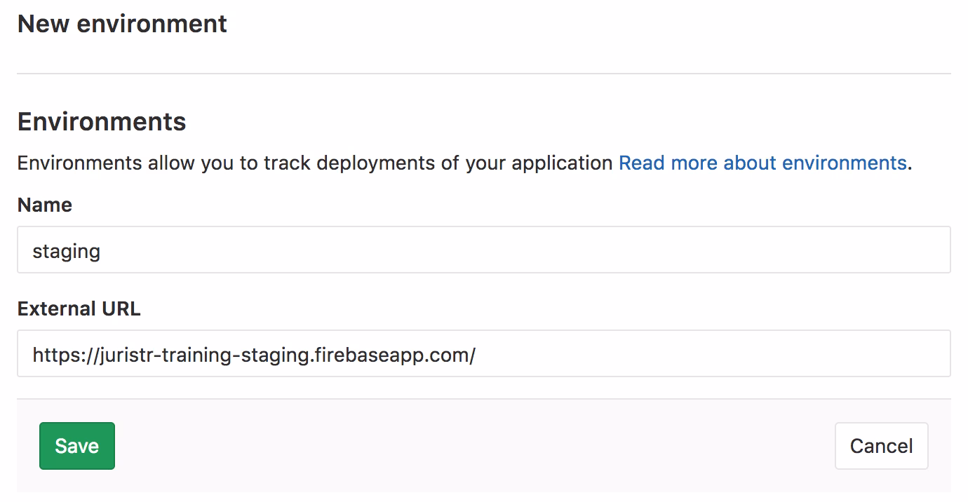 To add new environments in GitLab, first go to the web interface, navigate to your repository and then to CI / CD > Environments. There you can add 2 new entries, “development” and “production”.