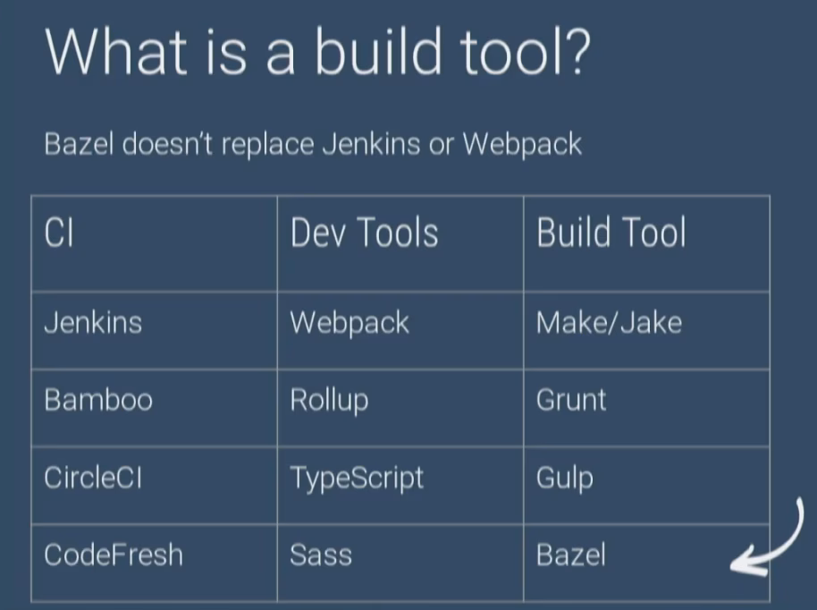 Bazel is one of those. It’s the open source version of Google’s internal “Blaze” build tool that powers its huge internal monorepo. Bazel is known for being extremely fast, especially due to its ability of allowing it to scale on the cloud as well (Google has an internal requirement that on average a rebuild of any codebase size should never take longer than ~3 secs :scream:)