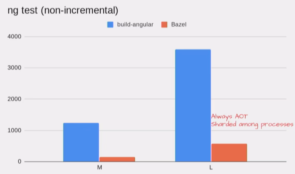 A dedicated team within the Angular team is currently working on bringing Bazel to the Angular community s.t. we can all benefit from such a super-power build tool. Currently it’s still an “early version” which can be used and works already, but is still a bit rough. By Q9 the goal is that everyone will be able to basically just enable a flag on the CLI configuration and Bazel will take care of the build rather than Webpack (something like that. details are still in the works ofc).