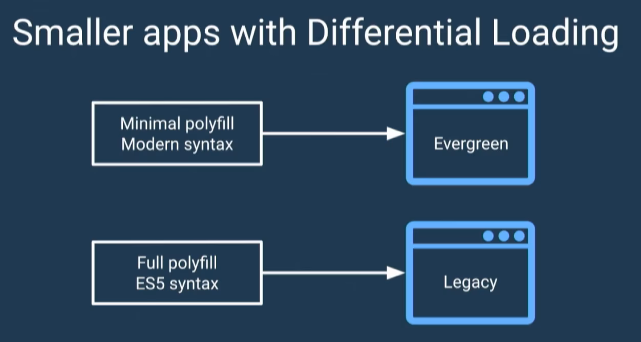 One of the main features that are coming in v8 is differential loading. Performance has high priority for the Angular team and the Chrome team at Google in general. Among other optimization techniques (i.e. see my lazy loading article), differential loading creates two different bundles: one for legacy browsers and one (with reduced polyfills) for modern evergreen browsers.