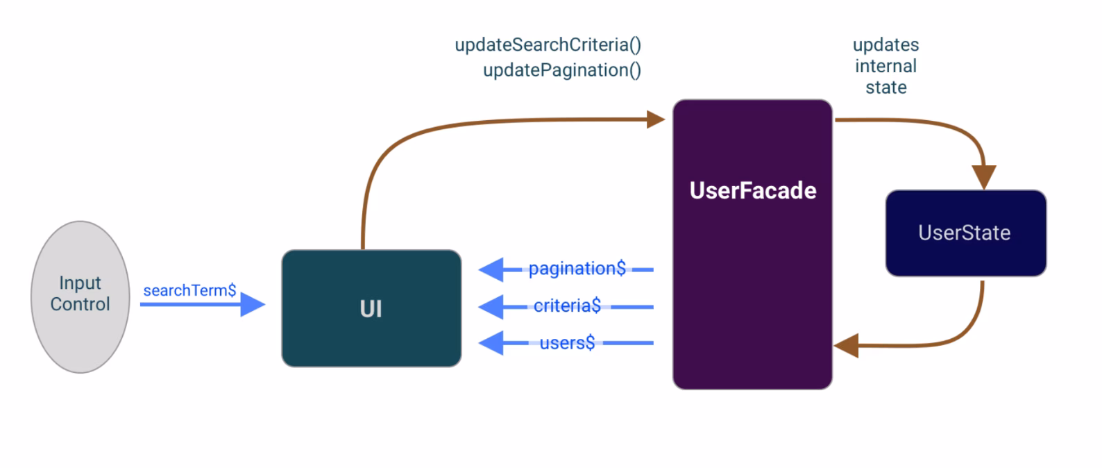 const criteria$ = userFacade.updateCriteria(searchCriteria);