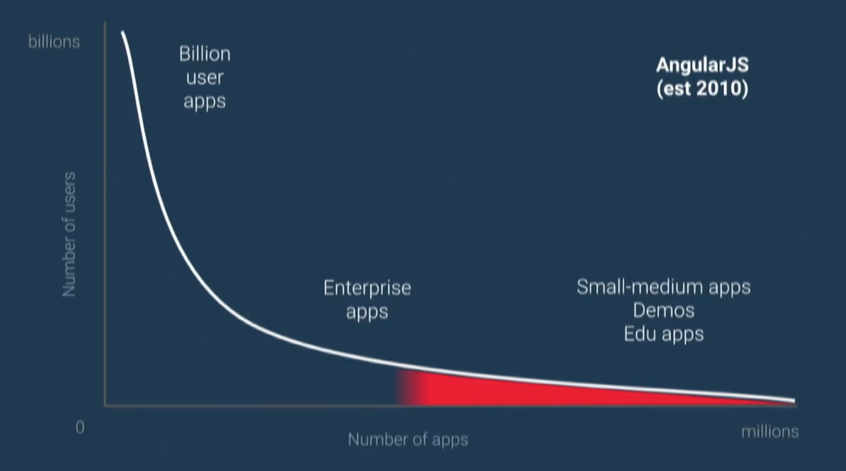 As you note, there’s still a space in the very upper part (Billion user apps), and while the team cannot announce anything yet, they’re collaborating with a Google internal team that is specifically designing those apps to evaluate whether Angular could expand into that space as well.