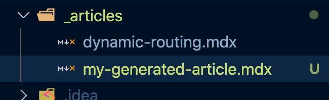 Next, create a file with the following name within that folder: __normalizedTitle__.mdx. __normalizedTitle__ is a variable that will be replaced with the actual value when we execute our workspace generator.