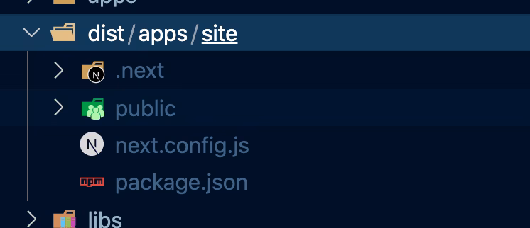 Once that build succeeds, you can see the output in the dist/apps/site directory.