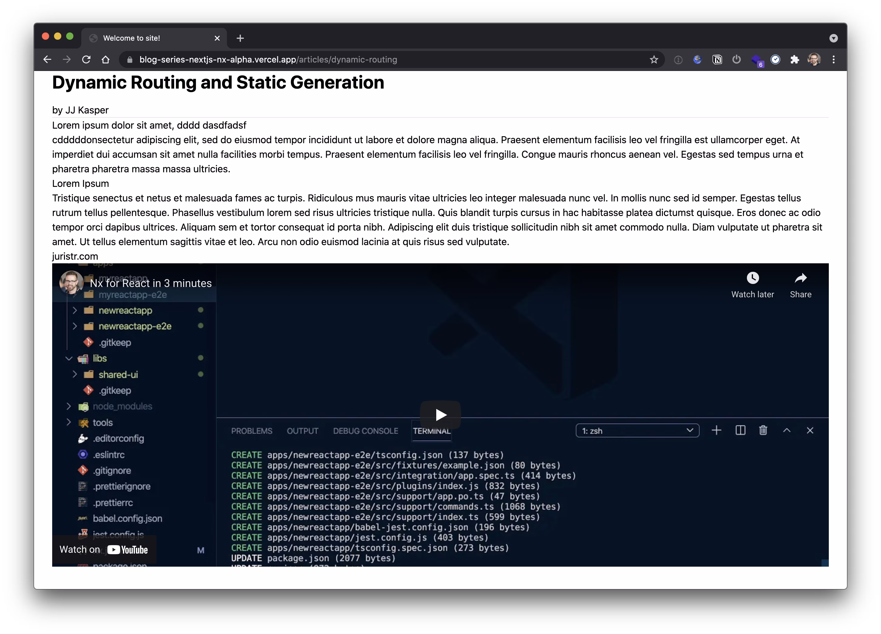 And obviously, we can go to the deployment URL (https://blog-series-nextjs-nx-alpha.vercel.app/articles/dynamic-routing) and see the site live: